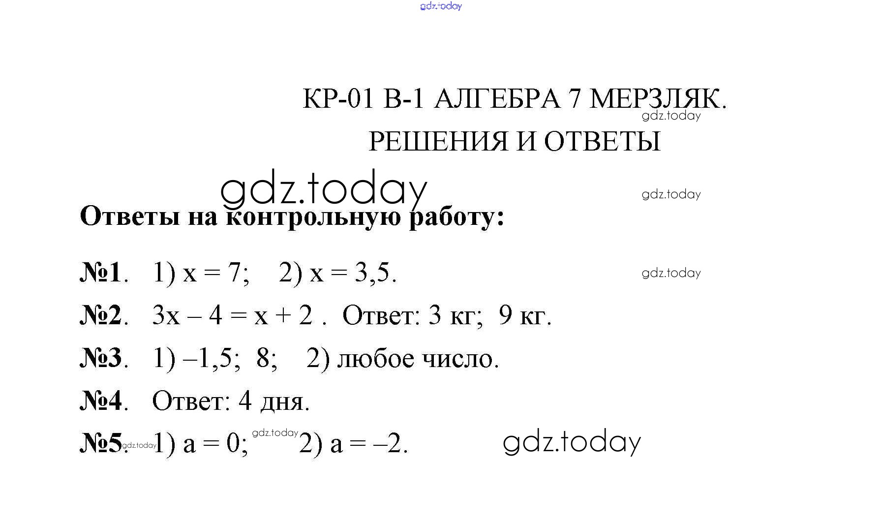 На страницах сайта gdz.today вы найдете учебный и вспомогательный материал, направленный на улучшения знаний школьной программы. ГДЗ - онлайн мир знаний КР-1. Варианты Решение к контрольным работам 1 Дидактическим материалам по Алгебре для 7 класса Мерзляк, Полонский Вентана-граф УМК 2017