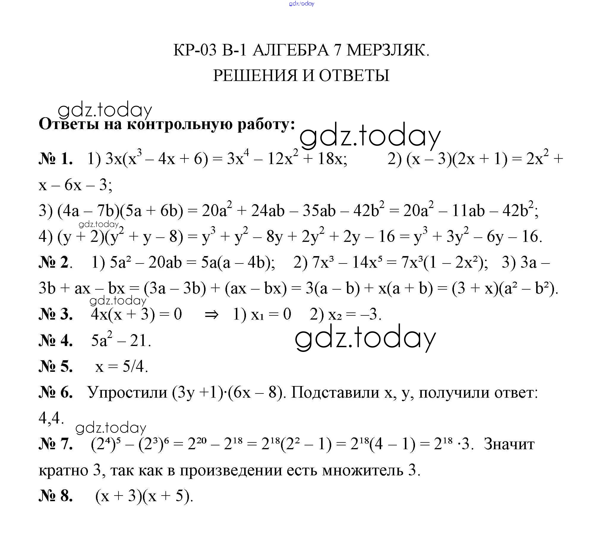 На страницах сайта gdz.today вы найдете учебный и вспомогательный материал, направленный на улучшения знаний школьной программы. ГДЗ - онлайн мир знаний КР-3. Варианты Решение к контрольным работам 1 Дидактическим материалам по Алгебре для 7 класса Мерзляк, Полонский Вентана-граф УМК 2017