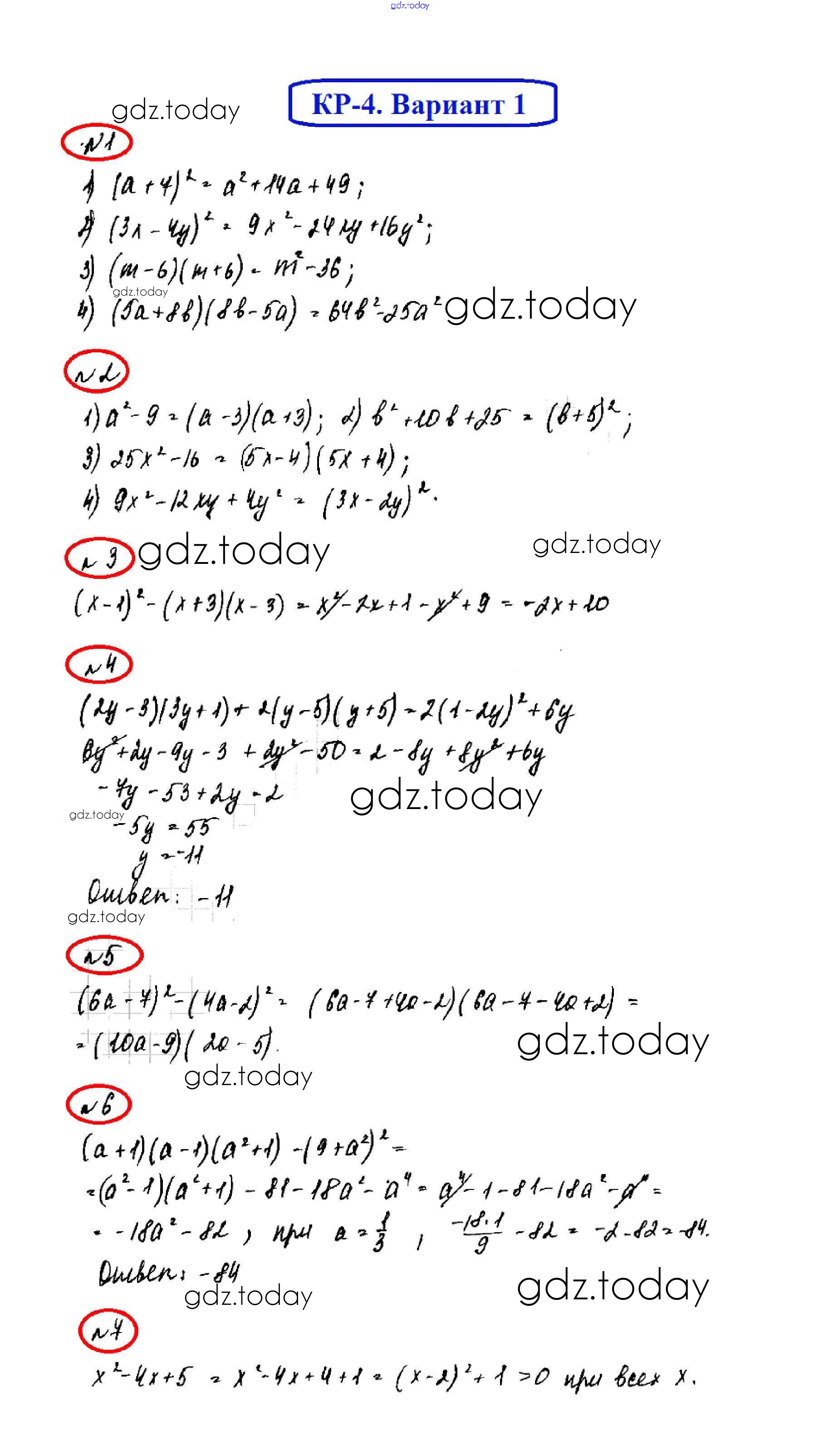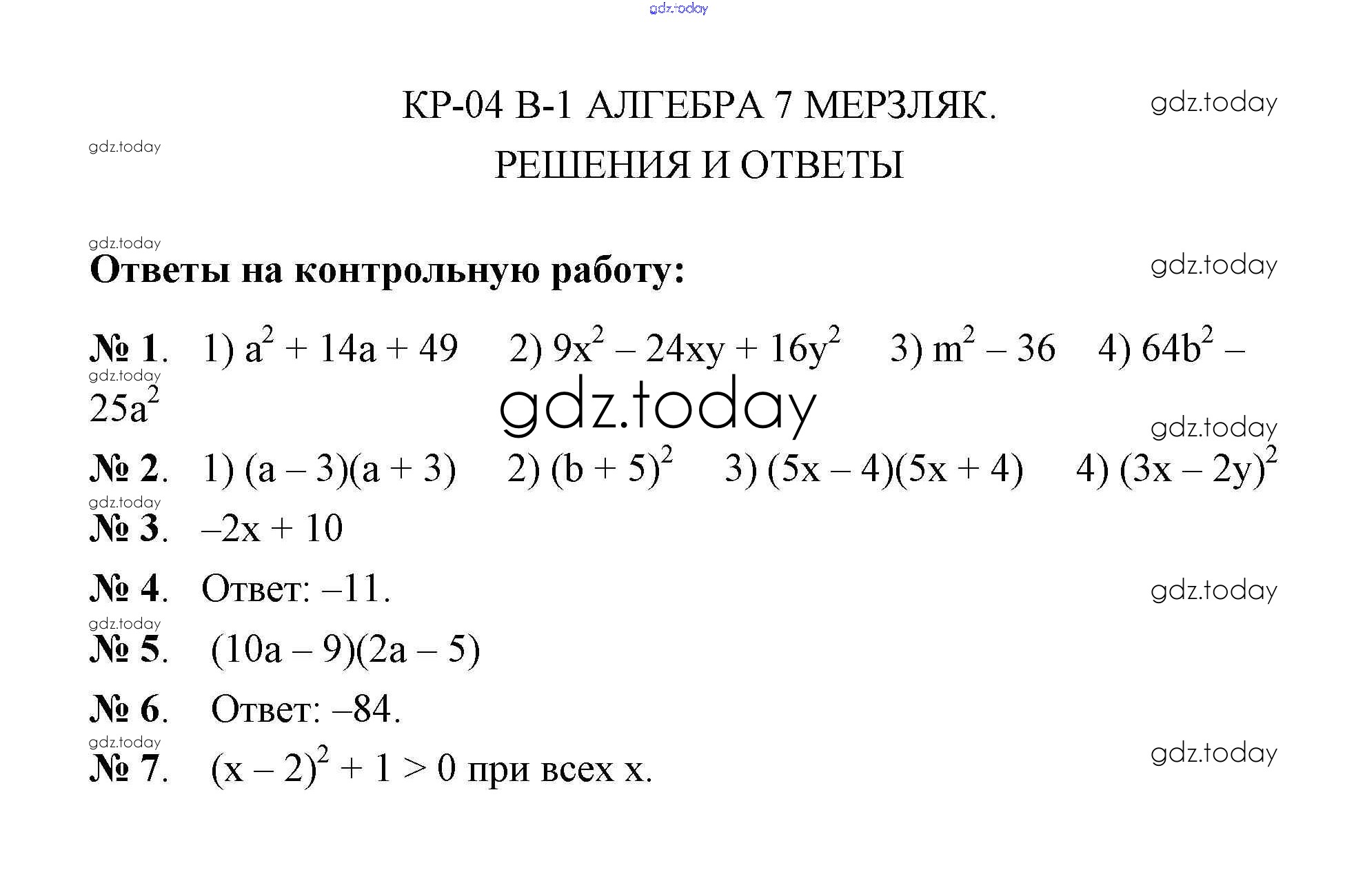 На страницах сайта gdz.today вы найдете учебный и вспомогательный материал, направленный на улучшения знаний школьной программы. ГДЗ - онлайн мир знаний КР-4. Варианты Решение к контрольным работам 1 Дидактическим материалам по Алгебре для 7 класса Мерзляк, Полонский Вентана-граф УМК 2017