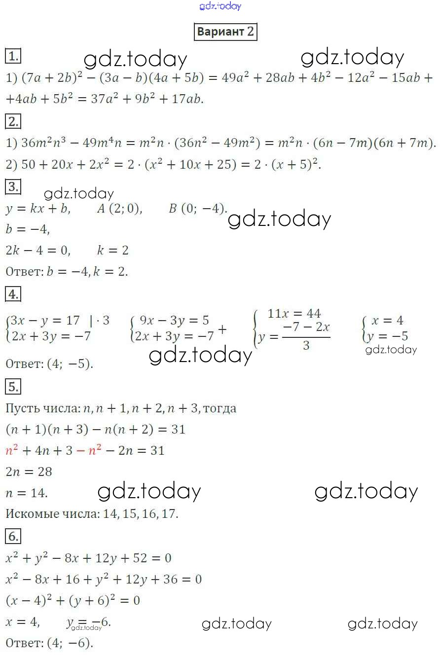 Ответы к КР-8. Варианты Решение к контрольным работам 2 Дидактическим материалам по Алгебре для 7 класса Мерзляк, Полонский Вентана-граф УМК 2017