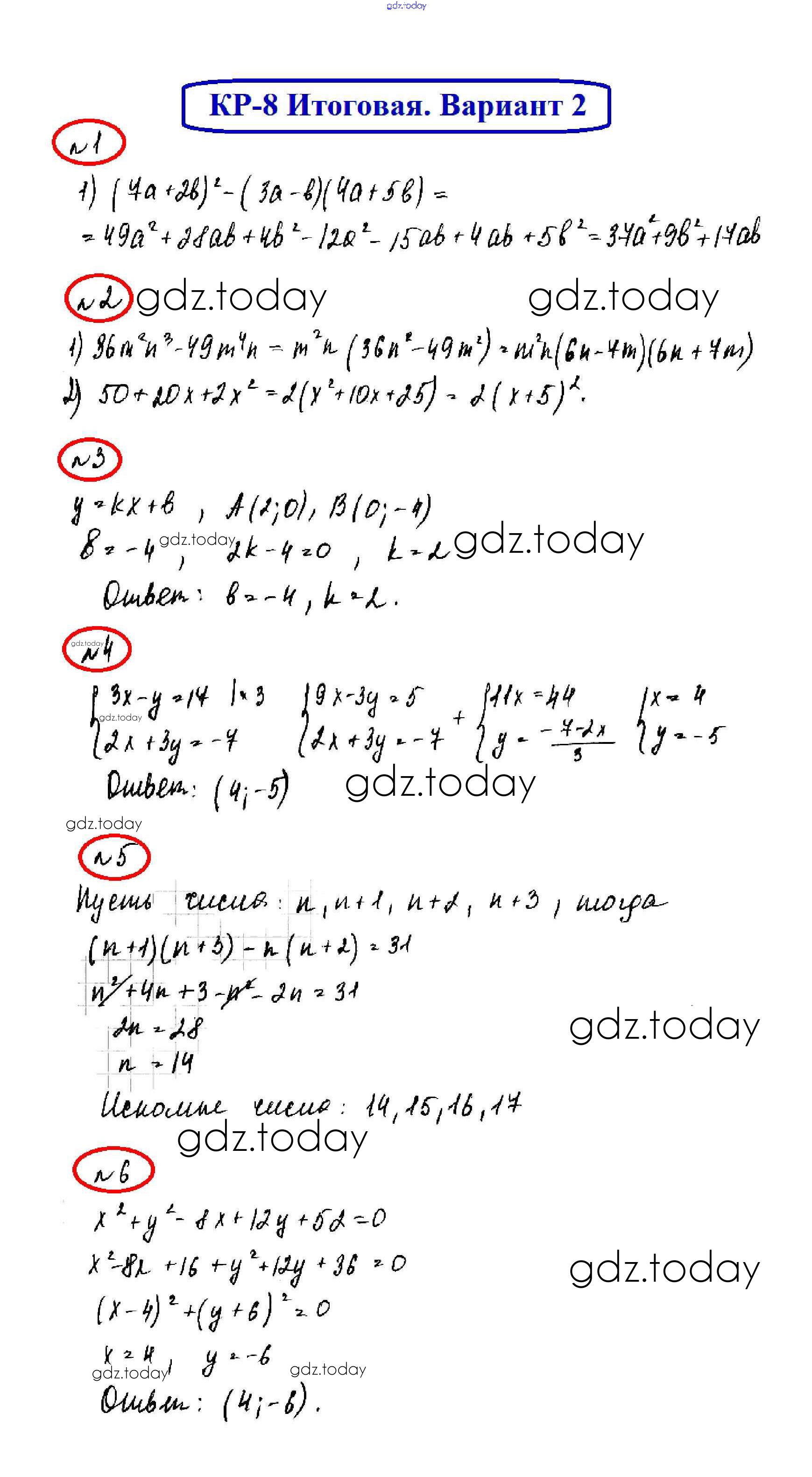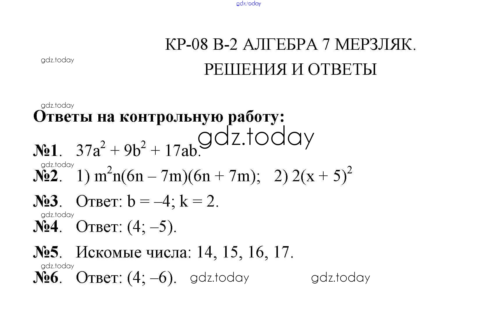 На страницах сайта gdz.today вы найдете учебный и вспомогательный материал, направленный на улучшения знаний школьной программы. ГДЗ - онлайн мир знаний КР-8. Варианты Решение к контрольным работам 2 Дидактическим материалам по Алгебре для 7 класса Мерзляк, Полонский Вентана-граф УМК 2017