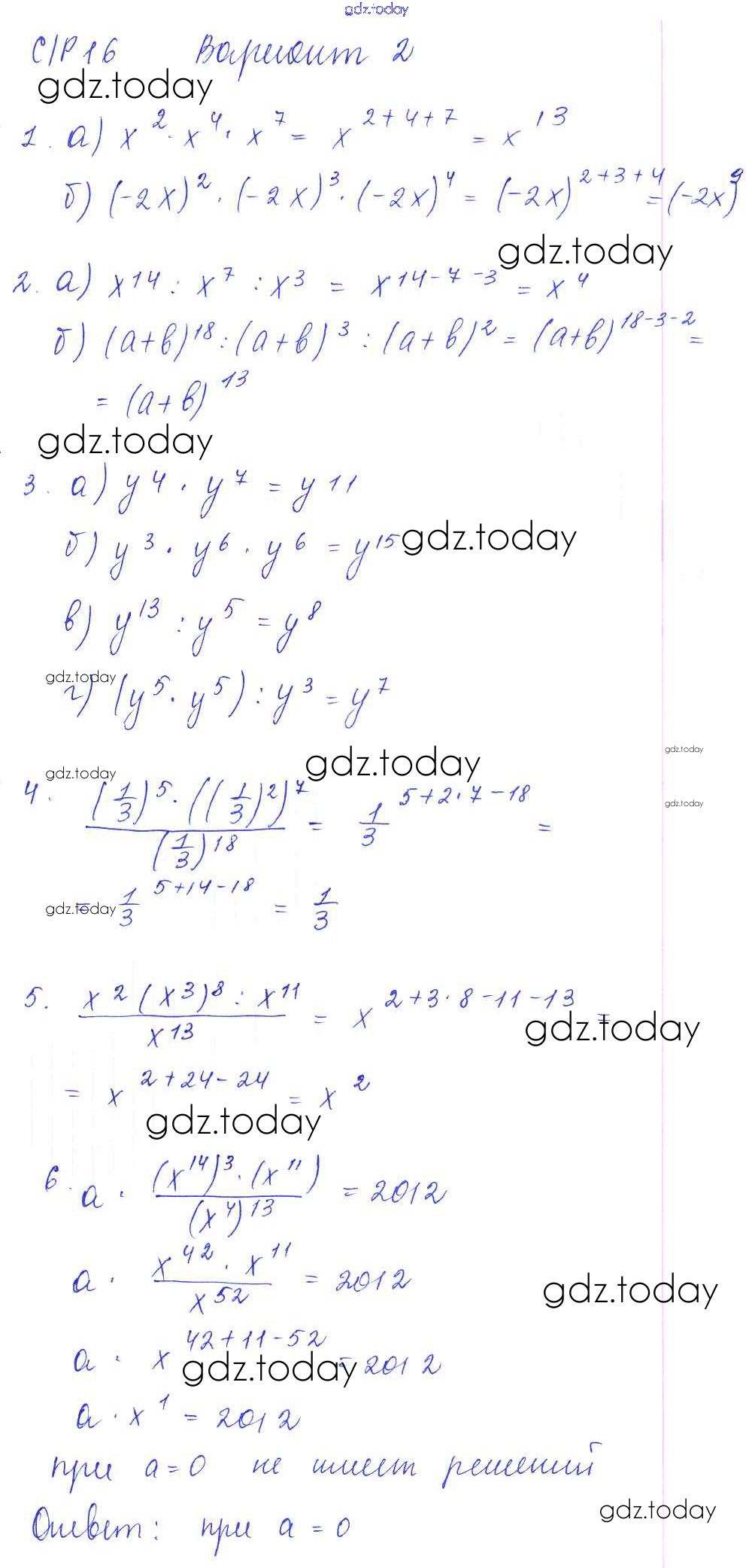 На страницах сайта gdz.today вы найдете учебный и вспомогательный материал, направленный на улучшения знаний школьной программы. ГДЗ - онлайн мир знаний СР-16 Решение к самостоятельным работам. Варианты 2 Дидактическим материалам по Алгебре для 7 класса Попов Экзамен УМК 2016