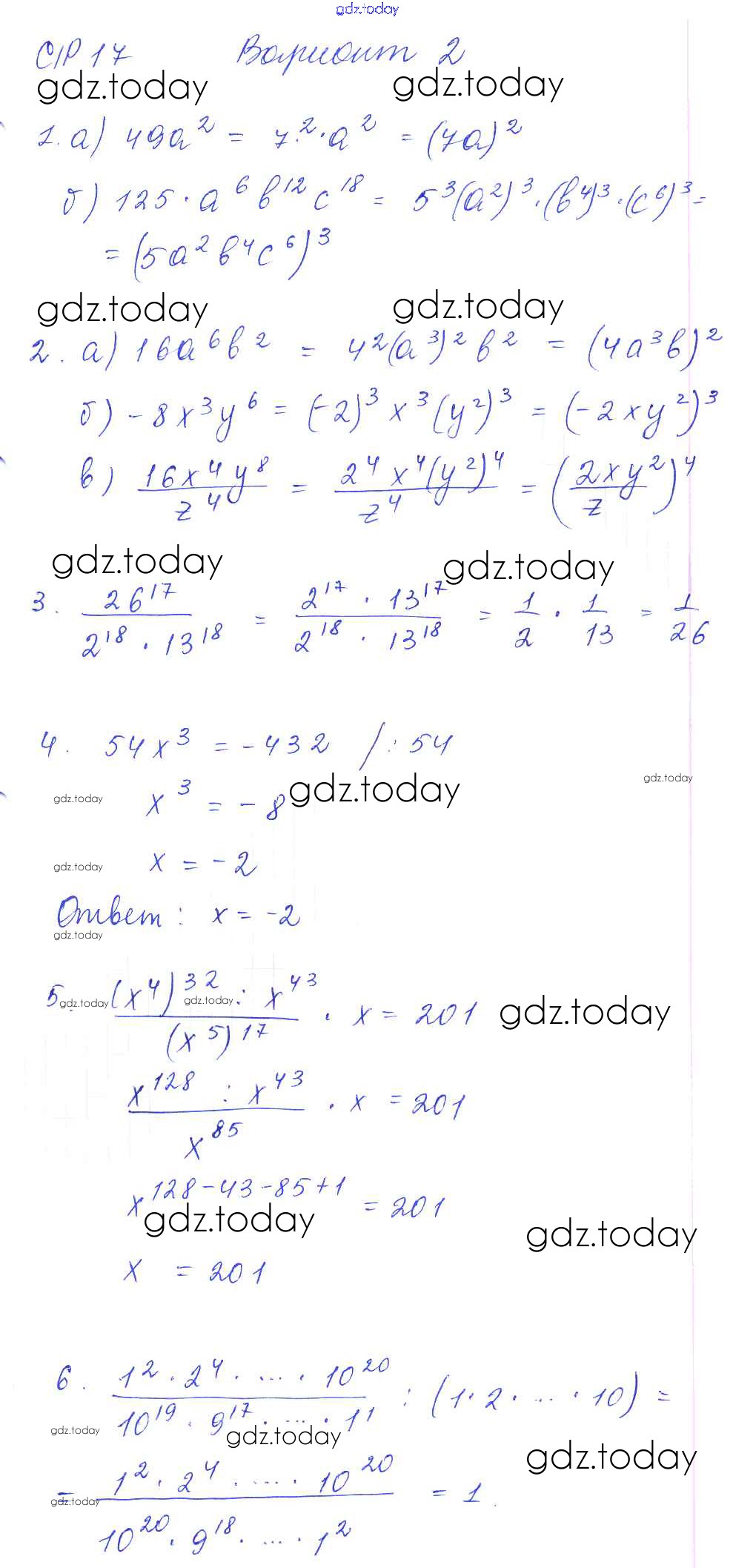 Ответы к СР-17 Решение к самостоятельным работам. Варианты 2 Дидактическим материалам по Алгебре для 7 класса Попов Экзамен УМК 2016