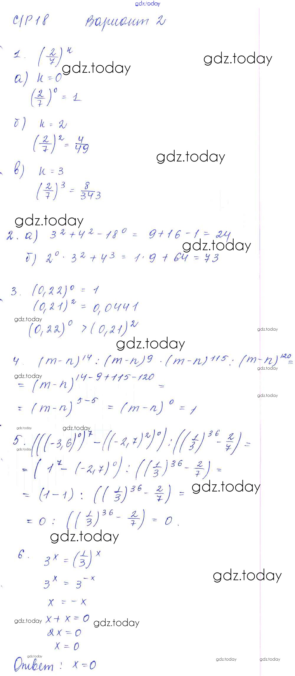 Ответы к СР-18 Решение к самостоятельным работам. Варианты 2 Дидактическим материалам по Алгебре для 7 класса Попов Экзамен УМК 2016