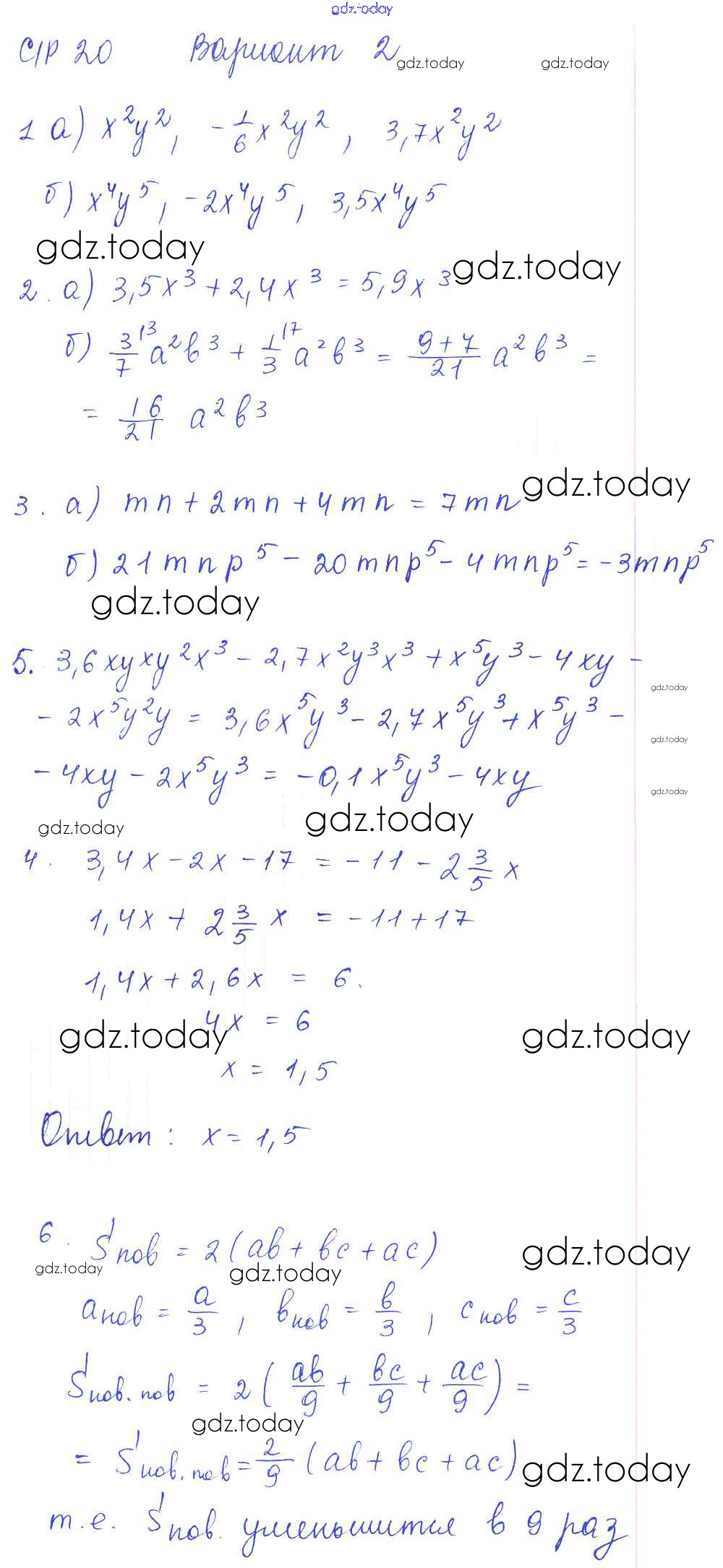 Ответы к СР-20 Решение к самостоятельным работам. Варианты 2 Дидактическим материалам по Алгебре для 7 класса Попов Экзамен УМК 2016