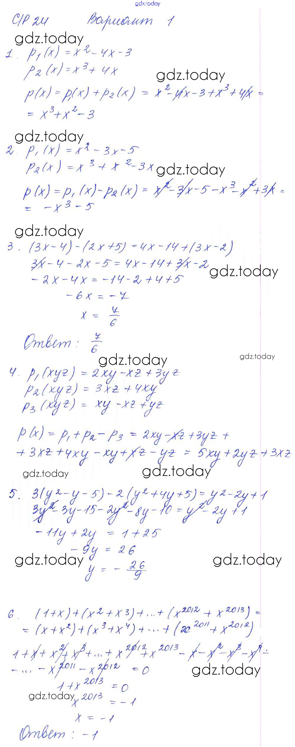 Ответы к СР-24 Решение к самостоятельным работам. Варианты 1 Дидактическим материалам по Алгебре для 7 класса Попов Экзамен УМК 2016