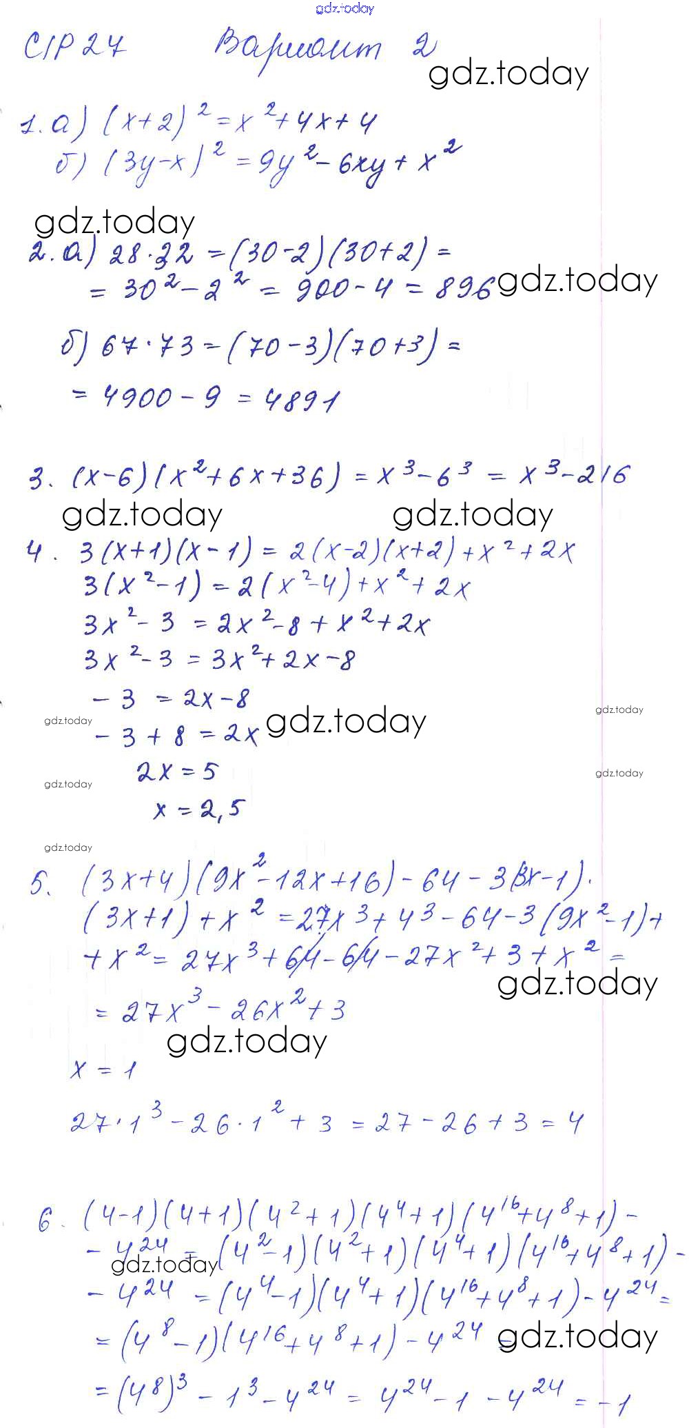 Ответы к СР-27 Решение к самостоятельным работам. Варианты 2 Дидактическим материалам по Алгебре для 7 класса Попов Экзамен УМК 2016