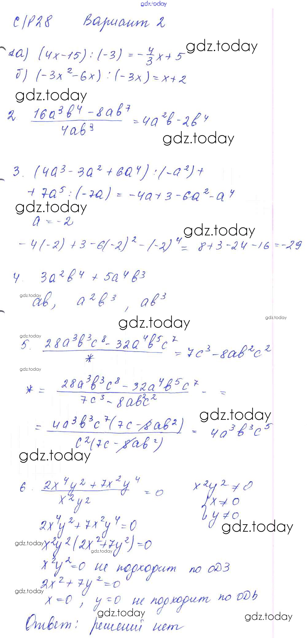 На страницах сайта gdz.today вы найдете учебный и вспомогательный материал, направленный на улучшения знаний школьной программы. ГДЗ - онлайн мир знаний СР-28 Решение к самостоятельным работам. Варианты 2 Дидактическим материалам по Алгебре для 7 класса Попов Экзамен УМК 2016
