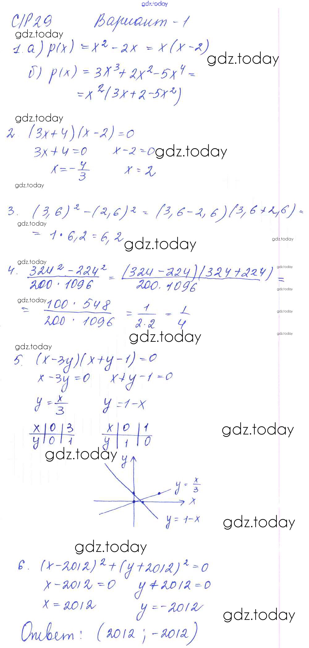 На страницах сайта gdz.today вы найдете учебный и вспомогательный материал, направленный на улучшения знаний школьной программы. ГДЗ - онлайн мир знаний СР-29 Решение к самостоятельным работам. Варианты 1 Дидактическим материалам по Алгебре для 7 класса Попов Экзамен УМК 2016