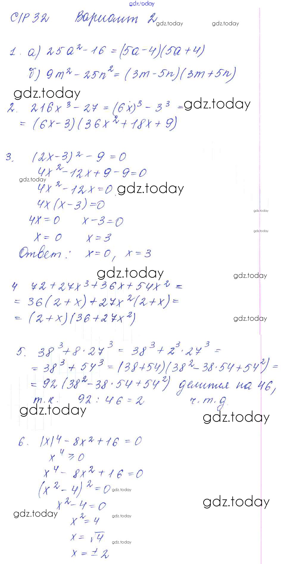 На страницах сайта gdz.today вы найдете учебный и вспомогательный материал, направленный на улучшения знаний школьной программы. ГДЗ - онлайн мир знаний СР-32 Решение к самостоятельным работам. Варианты 2 Дидактическим материалам по Алгебре для 7 класса Попов Экзамен УМК 2016