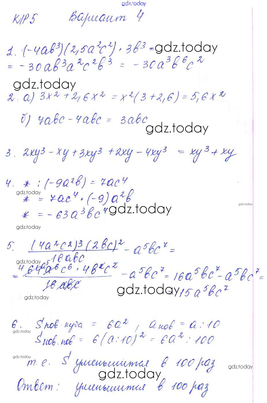 Ответы к КР-5 Решение к контрольным работам. Варианты 4 Дидактическим материалам по Алгебре для 7 класса Попов Экзамен УМК 2016