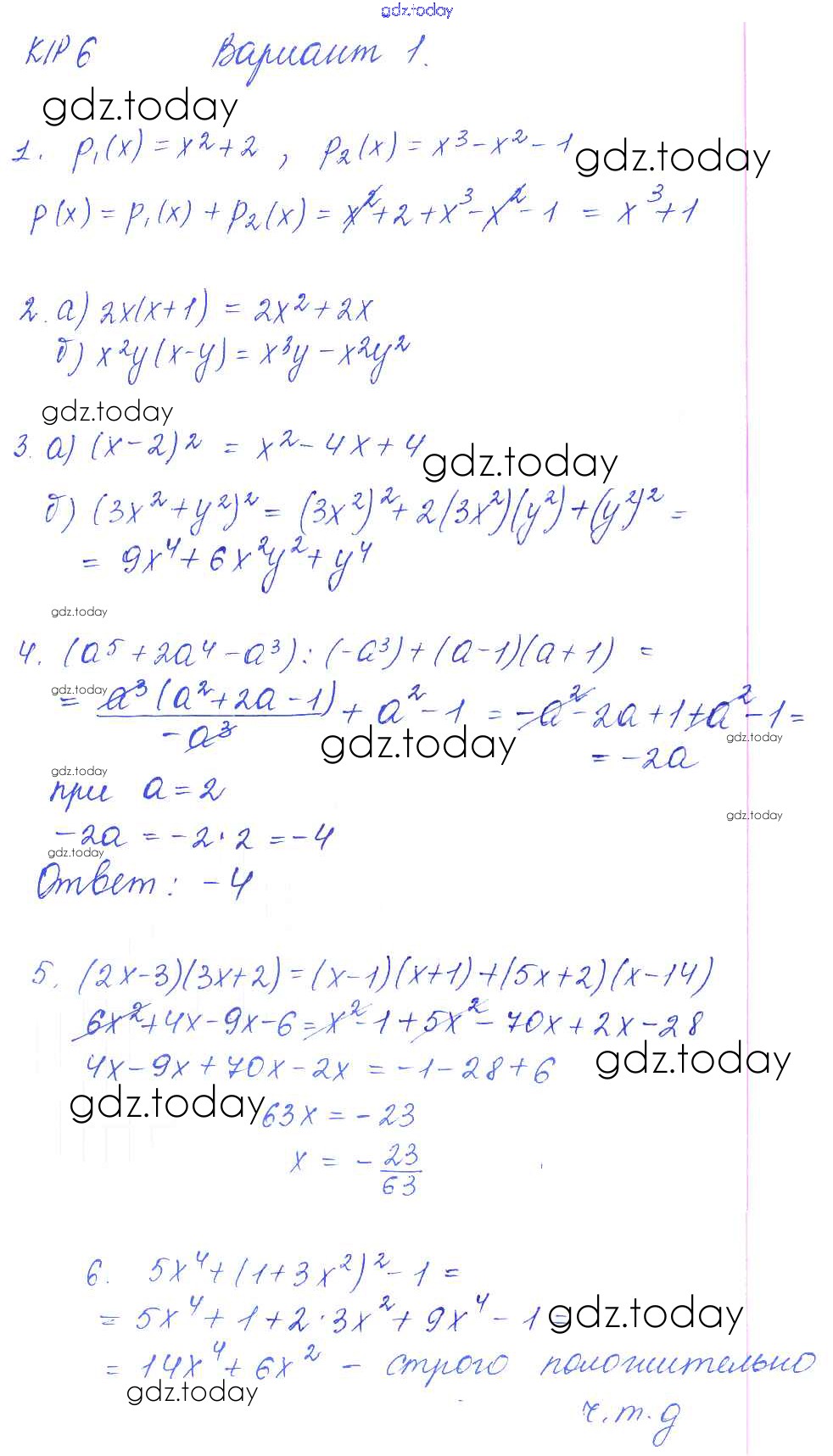 На страницах сайта gdz.today вы найдете учебный и вспомогательный материал, направленный на улучшения знаний школьной программы. ГДЗ - онлайн мир знаний КР-6 Решение к контрольным работам. Варианты 1 Дидактическим материалам по Алгебре для 7 класса Попов Экзамен УМК 2016