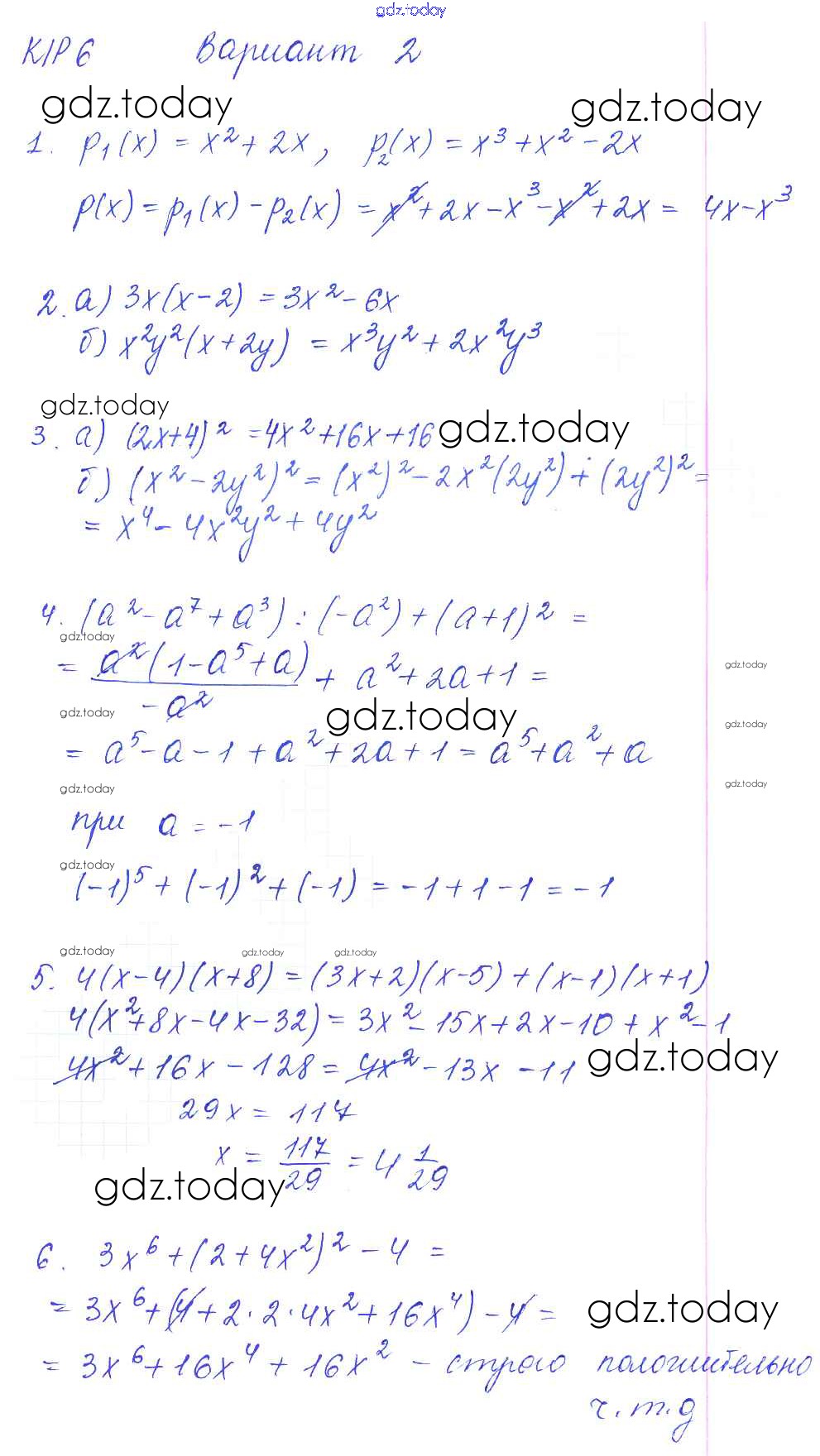 Ответы к КР-6 Решение к контрольным работам. Варианты 2 Дидактическим материалам по Алгебре для 7 класса Попов Экзамен УМК 2016