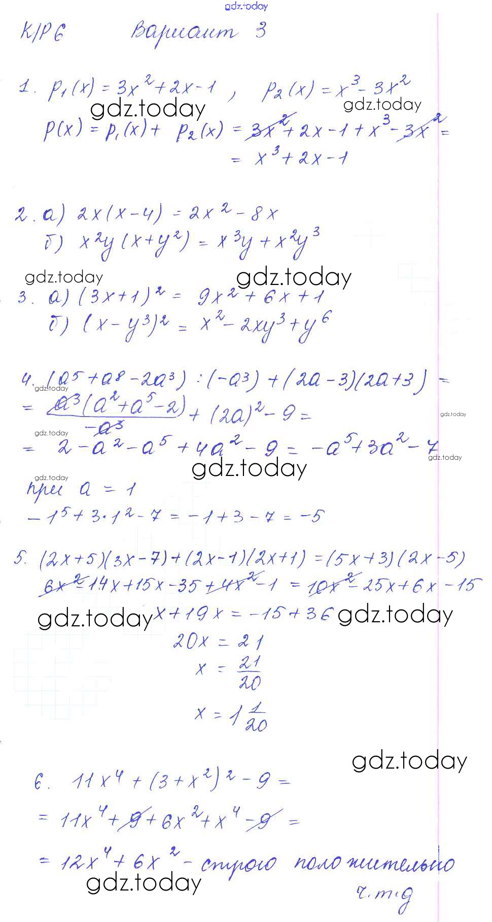 Ответы к КР-6 Решение к контрольным работам. Варианты 3 Дидактическим материалам по Алгебре для 7 класса Попов Экзамен УМК 2016