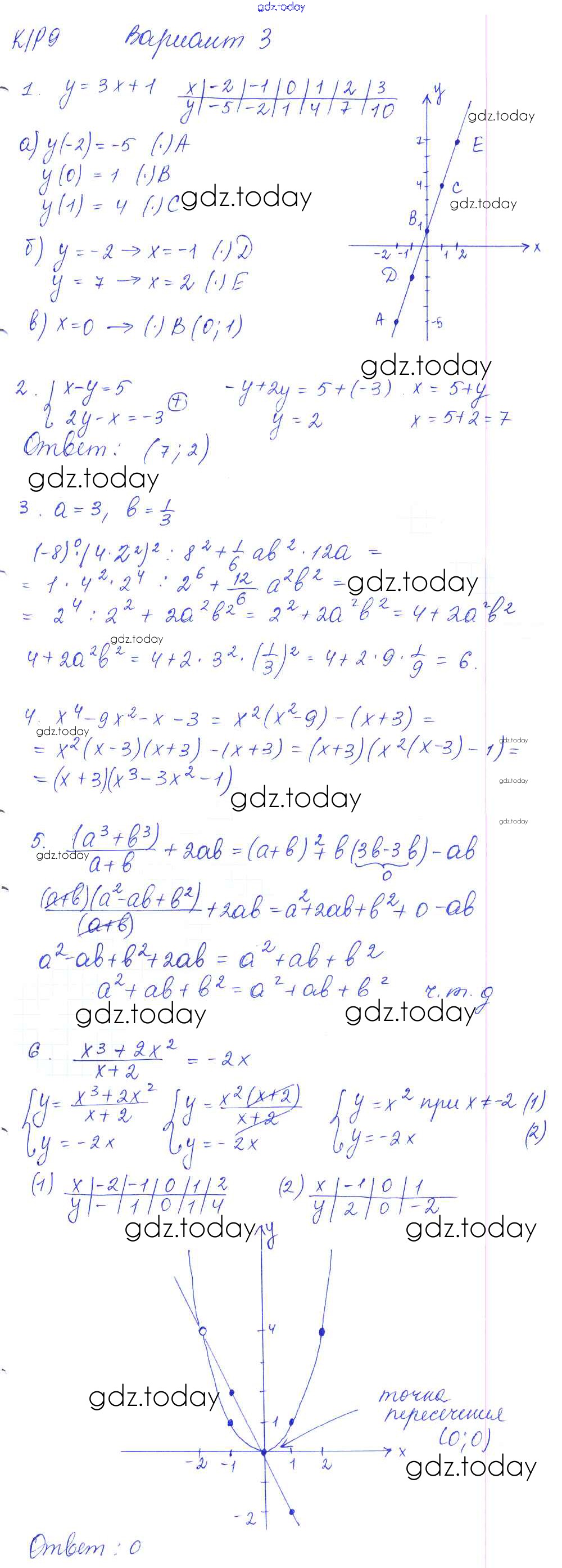 На страницах сайта gdz.today вы найдете учебный и вспомогательный материал, направленный на улучшения знаний школьной программы. ГДЗ - онлайн мир знаний КР-9 Решение к контрольным работам. Варианты 3 Дидактическим материалам по Алгебре для 7 класса Попов Экзамен УМК 2016