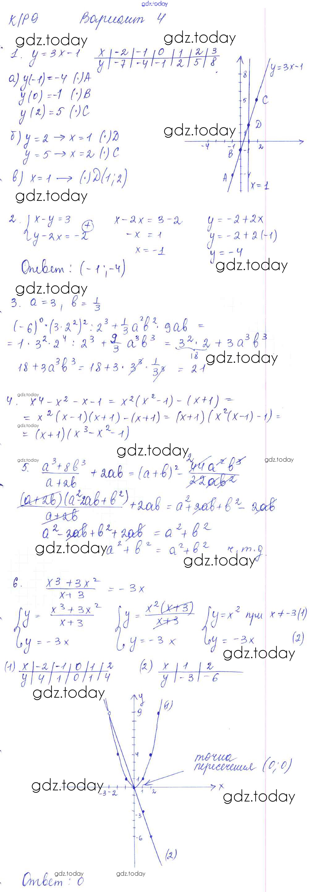 На страницах сайта gdz.today вы найдете учебный и вспомогательный материал, направленный на улучшения знаний школьной программы. ГДЗ - онлайн мир знаний КР-9 Решение к контрольным работам. Варианты 4 Дидактическим материалам по Алгебре для 7 класса Попов Экзамен УМК 2016