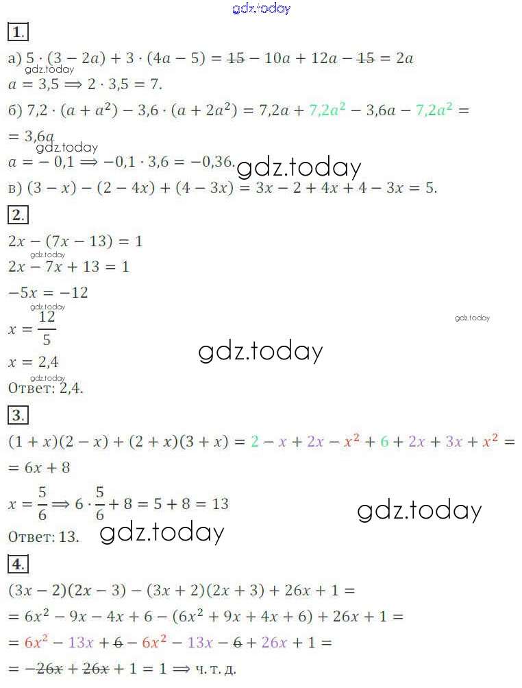 Ответы к СР-11. Варианты Решение к самостоятельным работам 1 Дидактическим материалам по Алгебре для 7 класса Потапов, Шевкин Просвещение МГУ - школе 2017