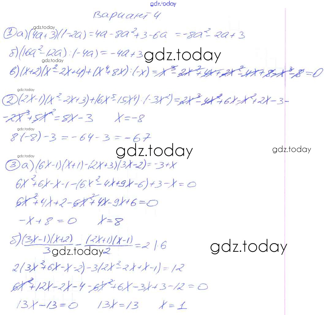 Ответы к СР-10 Решение к самостоятельным работам. Варианты 4 Дидактическим материалам по Алгебре для 7 класса Зив, Гольдич Виктория плюс 2013