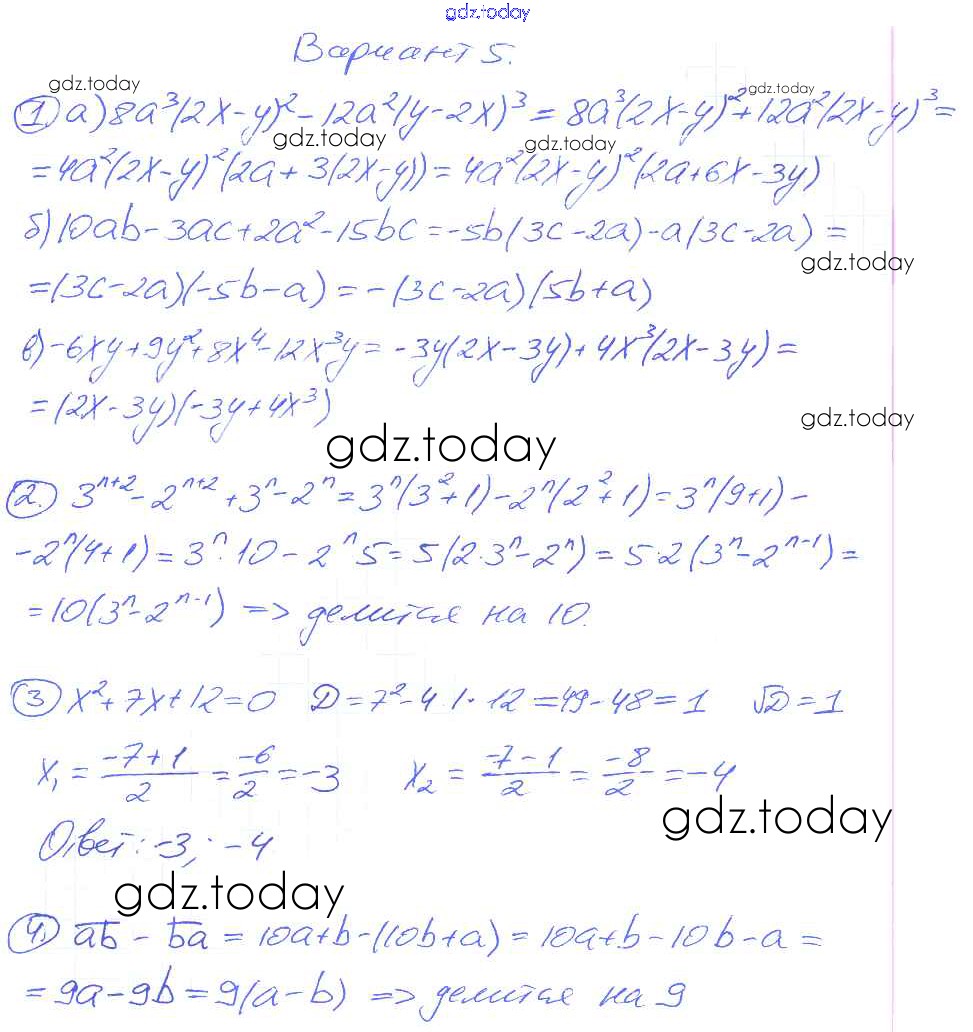 Ответы к СР-11 Решение к самостоятельным работам. Варианты 5 Дидактическим материалам по Алгебре для 7 класса Зив, Гольдич Виктория плюс 2013