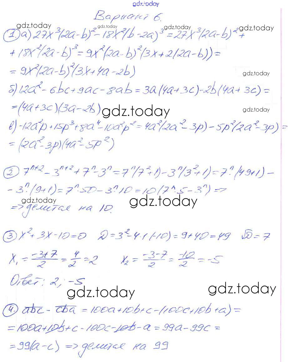 Ответы к СР-11 Решение к самостоятельным работам. Варианты 6 Дидактическим материалам по Алгебре для 7 класса Зив, Гольдич Виктория плюс 2013