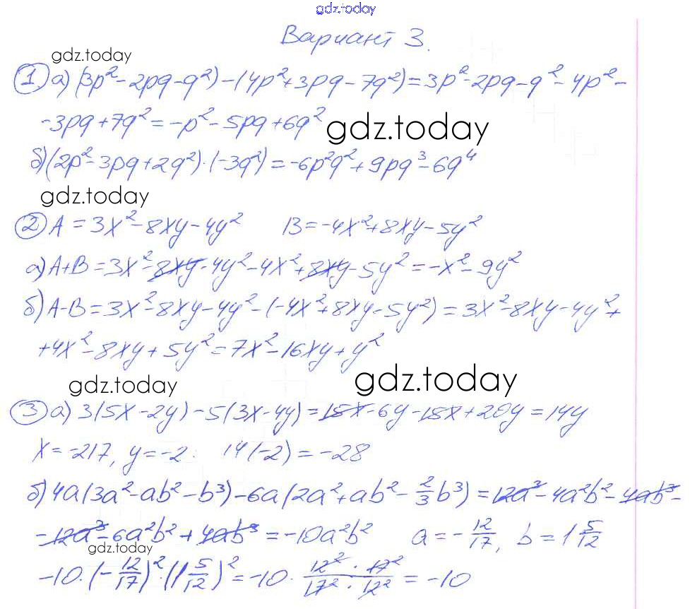 Ответы к СР-9 Решение к самостоятельным работам. Варианты 3 Дидактическим материалам по Алгебре для 7 класса Зив, Гольдич Виктория плюс 2013