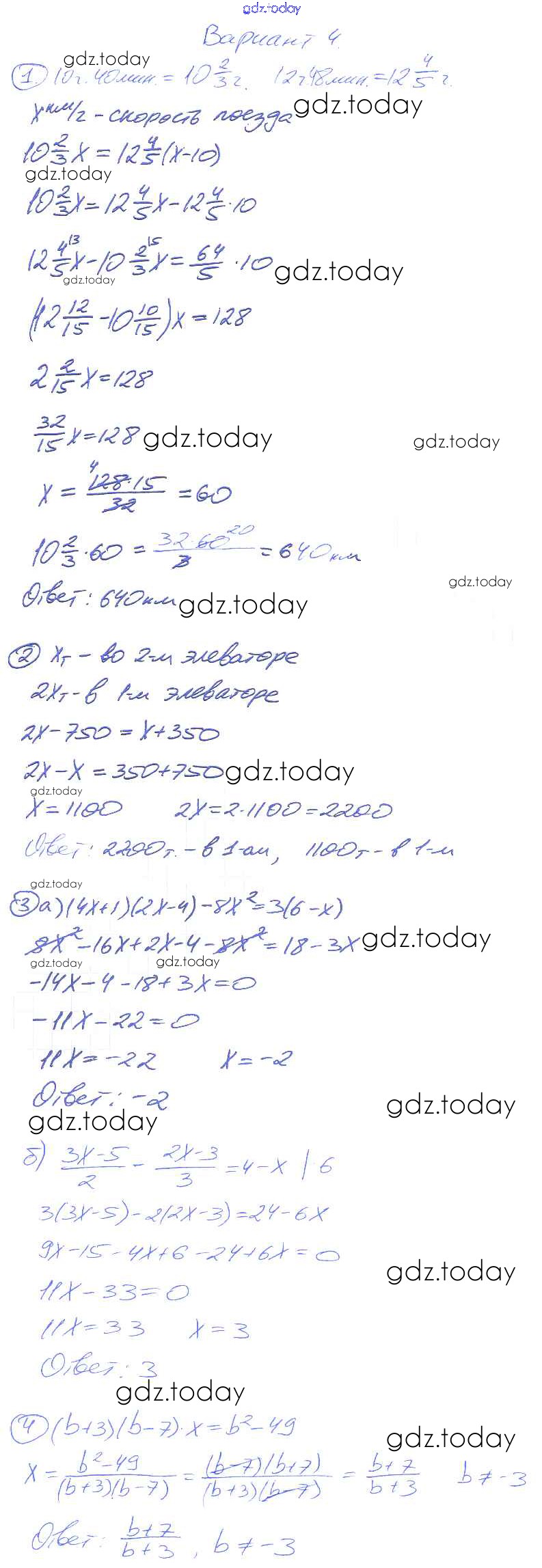 Ответы к КР-2 Решение к контрольным работам. Варианты 4 Дидактическим материалам по Алгебре для 7 класса Зив, Гольдич Виктория плюс 2013