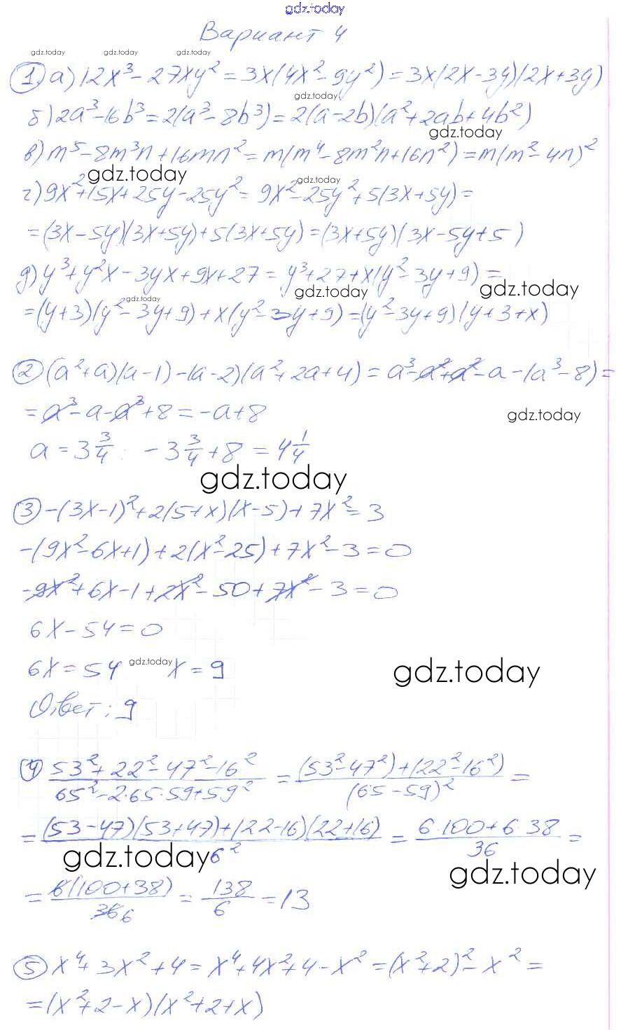 На страницах сайта gdz.today вы найдете учебный и вспомогательный материал, направленный на улучшения знаний школьной программы. ГДЗ - онлайн мир знаний КР-4 Решение к контрольным работам. Варианты 4 Дидактическим материалам по Алгебре для 7 класса Зив, Гольдич Виктория плюс 2013