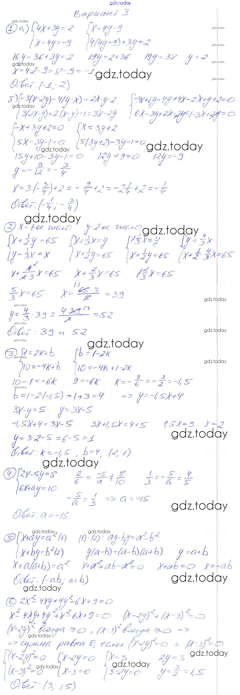На страницах сайта gdz.today вы найдете учебный и вспомогательный материал, направленный на улучшения знаний школьной программы. ГДЗ - онлайн мир знаний КР-7 Решение к контрольным работам. Варианты 3 Дидактическим материалам по Алгебре для 7 класса Зив, Гольдич Виктория плюс 2013
