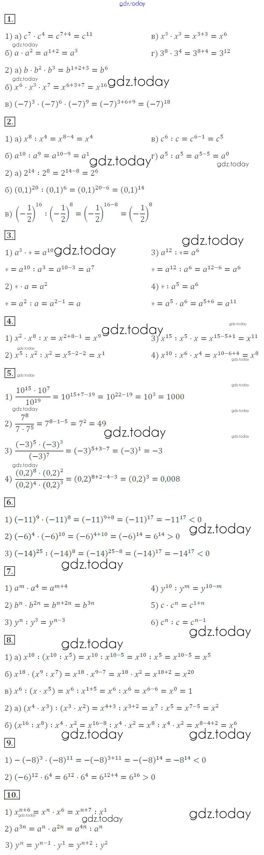 На страницах сайта gdz.today вы найдете учебный и вспомогательный материал, направленный на улучшения знаний школьной программы. ГДЗ - онлайн мир знаний Вариант 1 Решение к самостоятельным работам. Варианты С-20. Умножение и деление степеней с одинаковыми основаниями Дидактическим материалам по Алгебре для 7 класса Звавич, Кузнецова Просвещение 2012