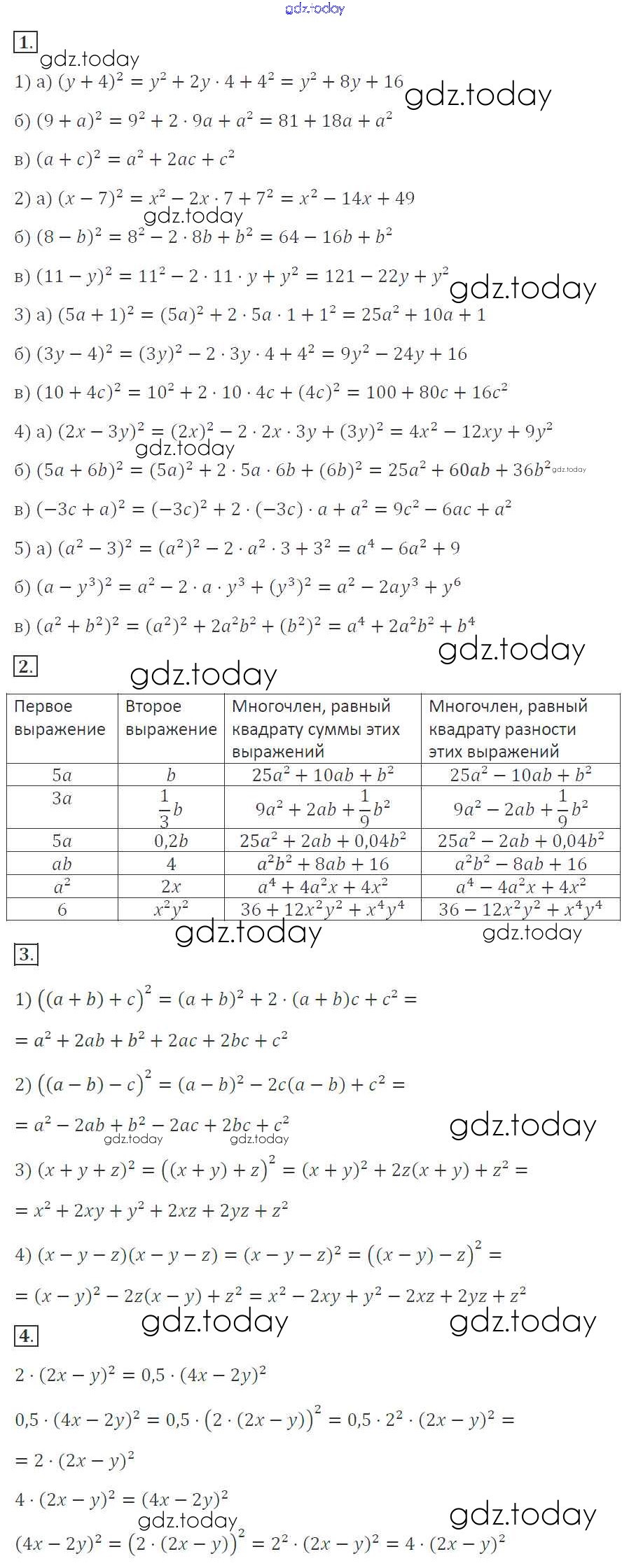 На страницах сайта gdz.today вы найдете учебный и вспомогательный материал, направленный на улучшения знаний школьной программы. ГДЗ - онлайн мир знаний Вариант 1 Решение к самостоятельным работам. Варианты С-37. Возведение в квадрат по формулам Дидактическим материалам по Алгебре для 7 класса Звавич, Кузнецова Просвещение 2012