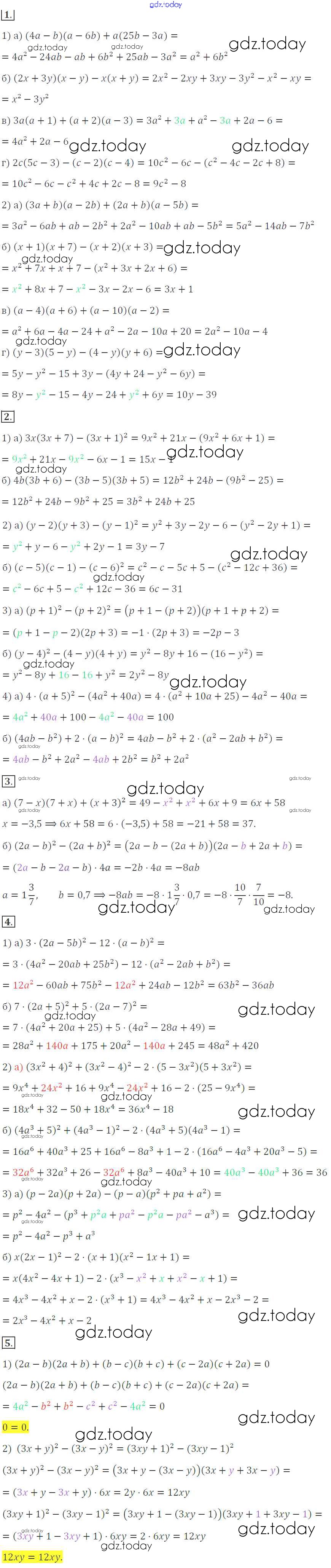 На страницах сайта gdz.today вы найдете учебный и вспомогательный материал, направленный на улучшения знаний школьной программы. ГДЗ - онлайн мир знаний Вариант 1 Решение к самостоятельным работам. Варианты С-43. Преобразование целых выражений Дидактическим материалам по Алгебре для 7 класса Звавич, Кузнецова Просвещение 2012