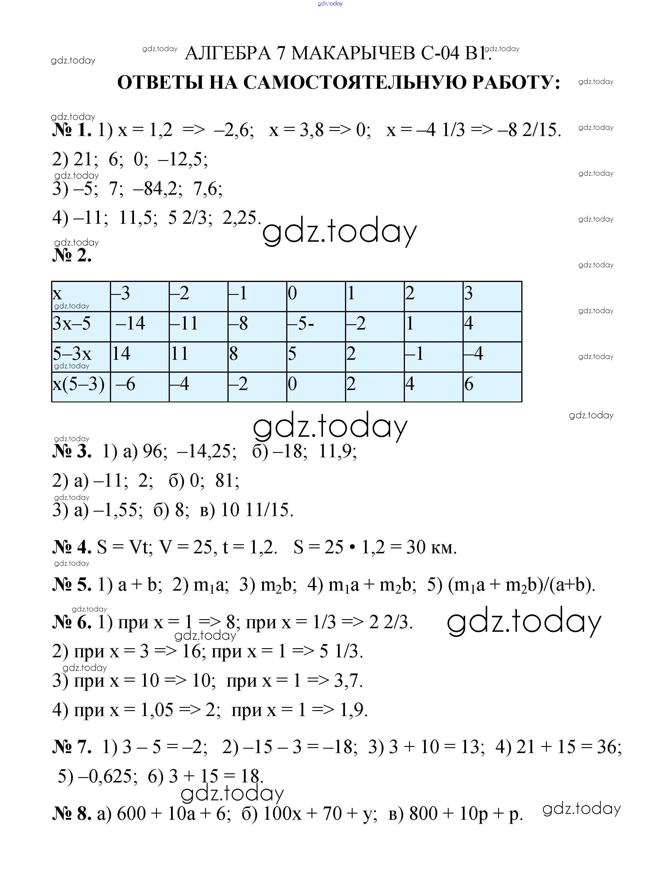 Ответы к Вариант 2 Решение к самостоятельным работам. Варианты С-4. Нахождение значений буквенных выражений Дидактическим материалам по Алгебре для 7 класса Звавич, Кузнецова Просвещение 2012