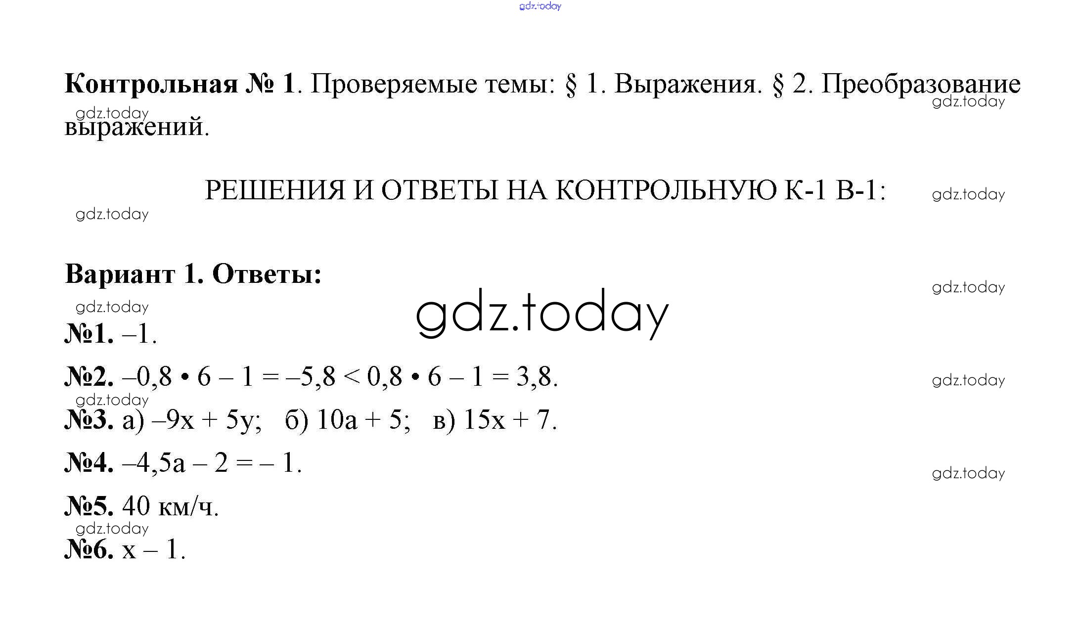На страницах сайта gdz.today вы найдете учебный и вспомогательный материал, направленный на улучшения знаний школьной программы. ГДЗ - онлайн мир знаний Вариант 1 Решение к контрольным работам k-1 Дидактическим материалам по Алгебре для 7 класса Звавич, Кузнецова Просвещение 2012