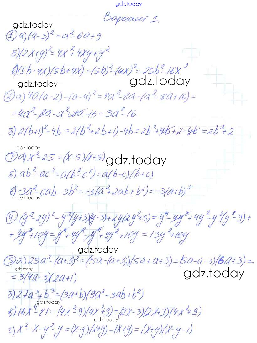 На страницах сайта gdz.today вы найдете учебный и вспомогательный материал, направленный на улучшения знаний школьной программы. ГДЗ - онлайн мир знаний Вариант 1 Решение к контрольным работам k-6a Дидактическим материалам по Алгебре для 7 класса Звавич, Кузнецова Просвещение 2012