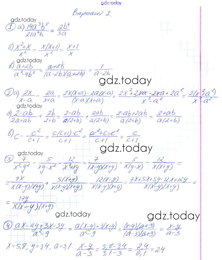 На страницах сайта gdz.today вы найдете учебный и вспомогательный материал, направленный на улучшения знаний школьной программы. ГДЗ - онлайн мир знаний Вариант 1 Решение к контрольным работам k-7a Дидактическим материалам по Алгебре для 7 класса Звавич, Кузнецова Просвещение 2012