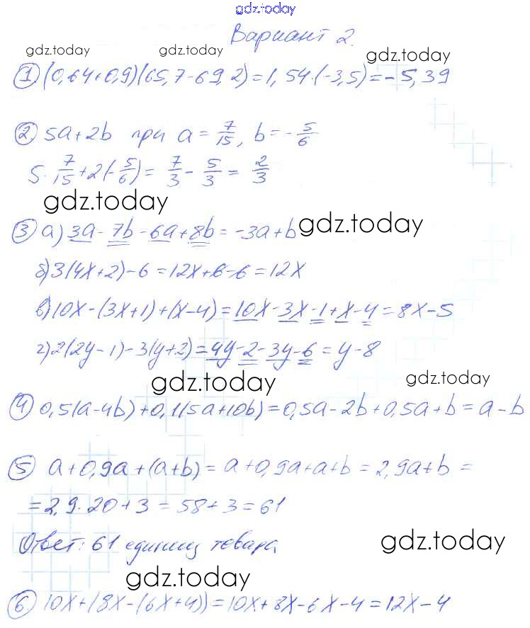 На страницах сайта gdz.today вы найдете учебный и вспомогательный материал, направленный на улучшения знаний школьной программы. ГДЗ - онлайн мир знаний Вариант 2 Решение к контрольным работам k-1a Дидактическим материалам по Алгебре для 7 класса Звавич, Кузнецова Просвещение 2012