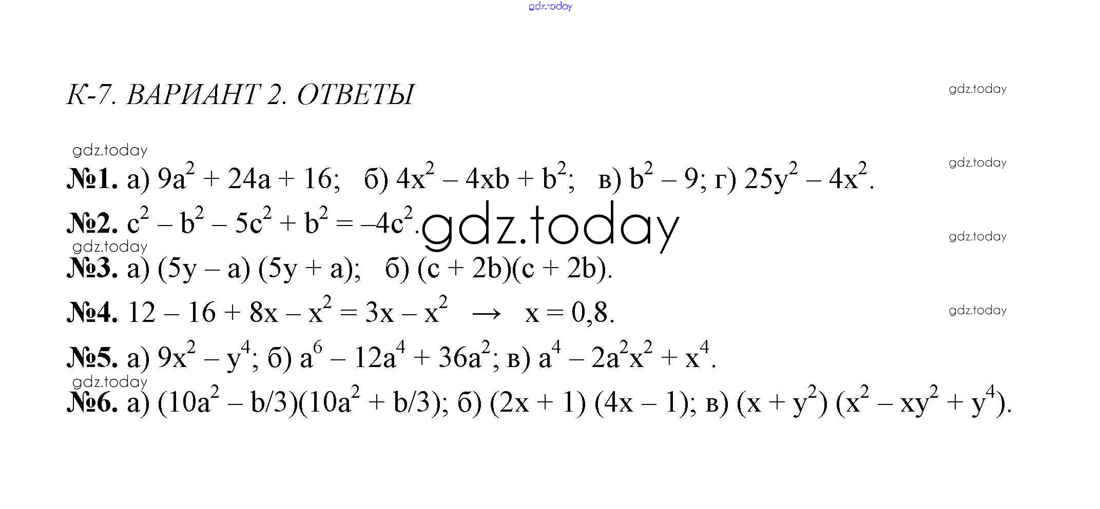 На страницах сайта gdz.today вы найдете учебный и вспомогательный материал, направленный на улучшения знаний школьной программы. ГДЗ - онлайн мир знаний Вариант 2 Решение к контрольным работам k-4 Дидактическим материалам по Алгебре для 7 класса Звавич, Кузнецова Просвещение 2012