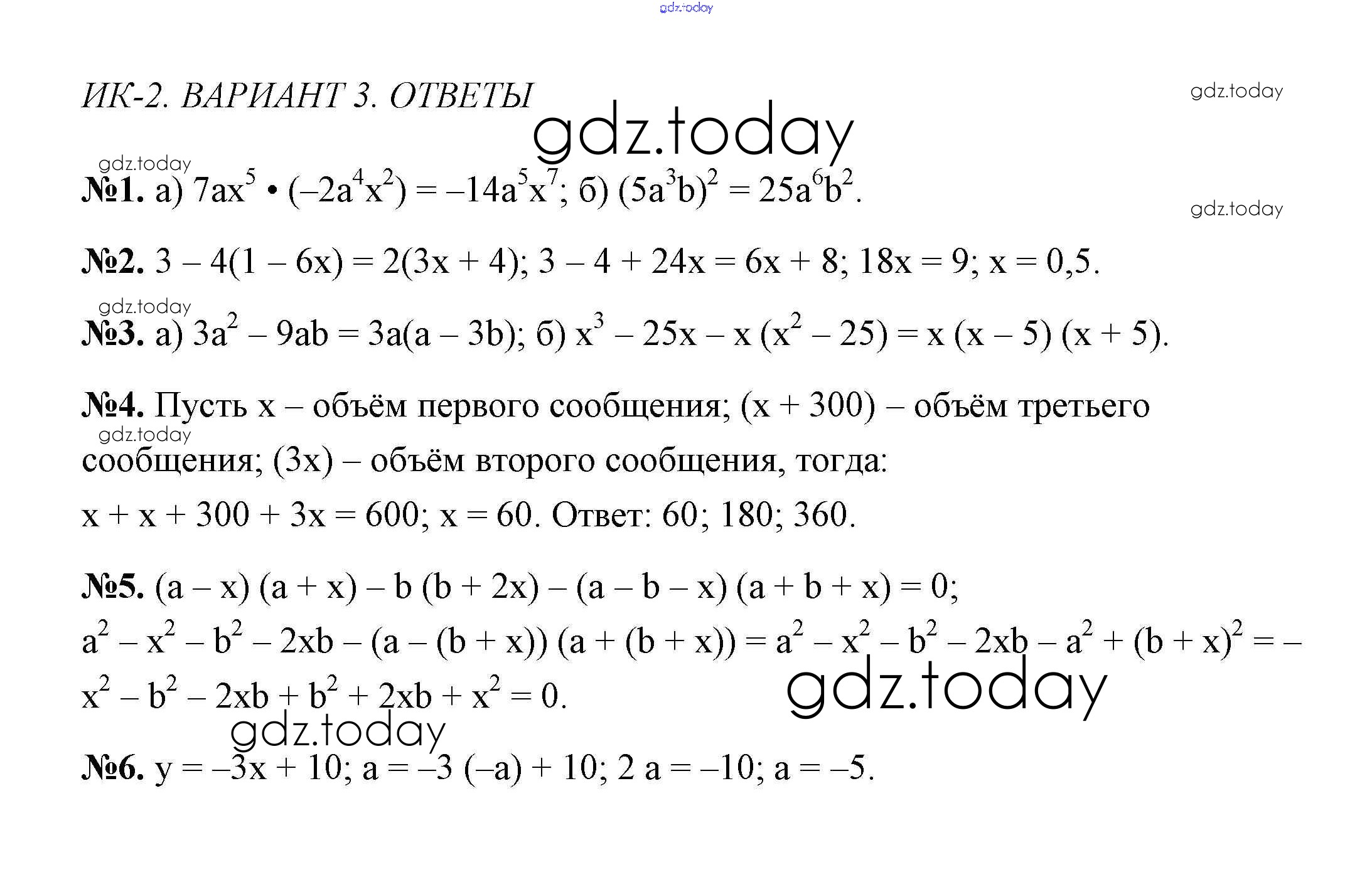 На страницах сайта gdz.today вы найдете учебный и вспомогательный материал, направленный на улучшения знаний школьной программы. ГДЗ - онлайн мир знаний Вариант 3 Решение к контрольным работам ik-2 Дидактическим материалам по Алгебре для 7 класса Звавич, Кузнецова Просвещение 2012