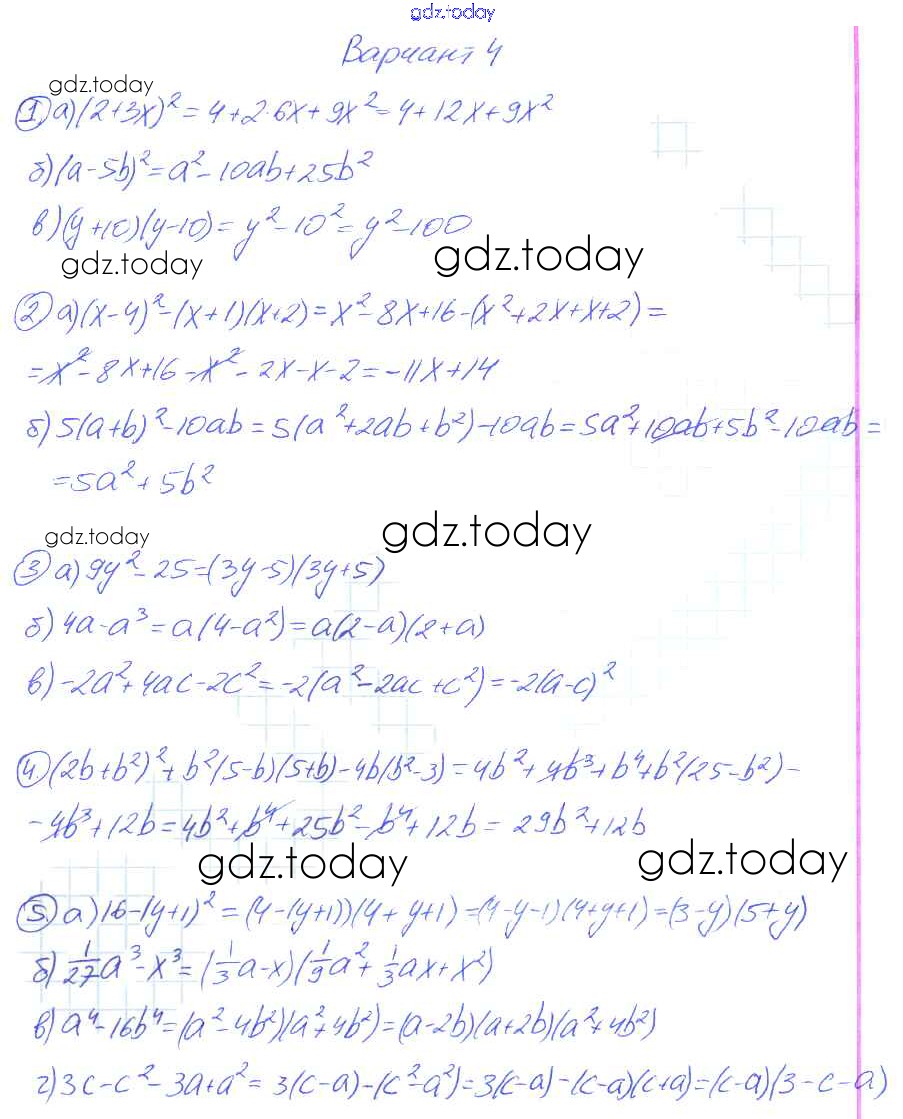 На страницах сайта gdz.today вы найдете учебный и вспомогательный материал, направленный на улучшения знаний школьной программы. ГДЗ - онлайн мир знаний Вариант 4 Решение к контрольным работам k-6a Дидактическим материалам по Алгебре для 7 класса Звавич, Кузнецова Просвещение 2012