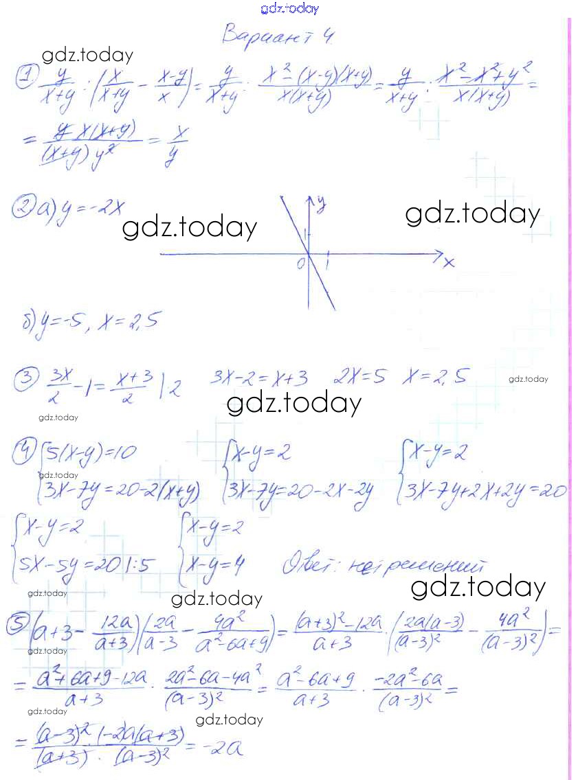 На страницах сайта gdz.today вы найдете учебный и вспомогательный материал, направленный на улучшения знаний школьной программы. ГДЗ - онлайн мир знаний Вариант 4 Решение к контрольным работам ik-3a Дидактическим материалам по Алгебре для 7 класса Звавич, Кузнецова Просвещение 2012