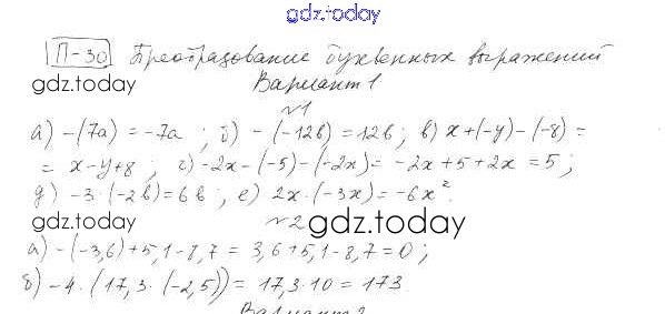 На страницах сайта gdz.today вы найдете учебный и вспомогательный материал, направленный на улучшения знаний школьной программы. ГДЗ - онлайн мир знаний ПР-30 Решение к проверочным работам вариант 1 Дидактическим материалам по Алгебре для 7 класса Евстафьева, Карп Просвещение 2018