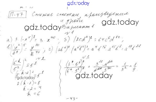 На страницах сайта gdz.today вы найдете учебный и вспомогательный материал, направленный на улучшения знаний школьной программы. ГДЗ - онлайн мир знаний ПР-47 Решение к проверочным работам вариант 1 Дидактическим материалам по Алгебре для 7 класса Евстафьева, Карп Просвещение 2018