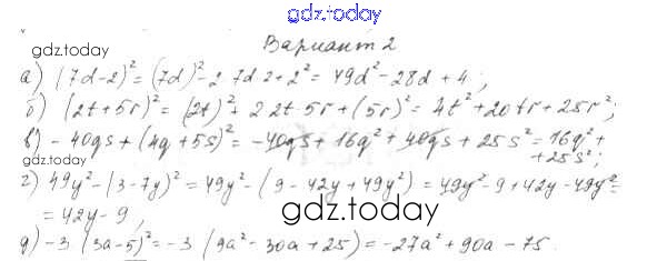 На страницах сайта gdz.today вы найдете учебный и вспомогательный материал, направленный на улучшения знаний школьной программы. ГДЗ - онлайн мир знаний ПР-55 Решение к проверочным работам вариант 2 Дидактическим материалам по Алгебре для 7 класса Евстафьева, Карп Просвещение 2018