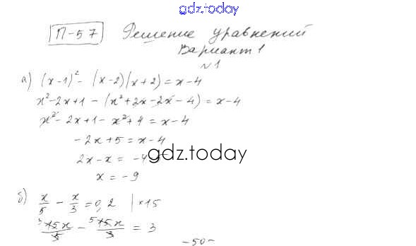 На страницах сайта gdz.today вы найдете учебный и вспомогательный материал, направленный на улучшения знаний школьной программы. ГДЗ - онлайн мир знаний ПР-57 Решение к проверочным работам вариант 1 Дидактическим материалам по Алгебре для 7 класса Евстафьева, Карп Просвещение 2018