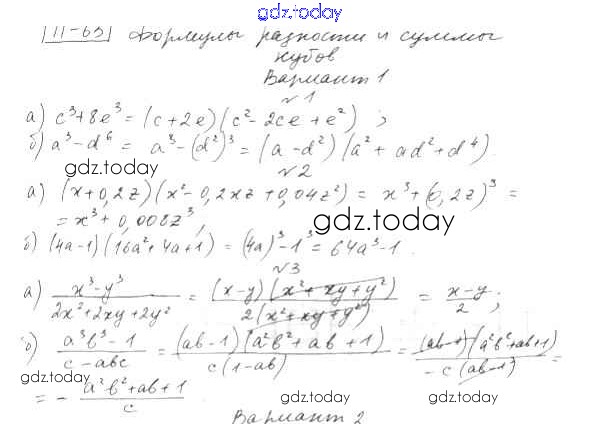 На страницах сайта gdz.today вы найдете учебный и вспомогательный материал, направленный на улучшения знаний школьной программы. ГДЗ - онлайн мир знаний ПР-63 Решение к проверочным работам вариант 1 Дидактическим материалам по Алгебре для 7 класса Евстафьева, Карп Просвещение 2018