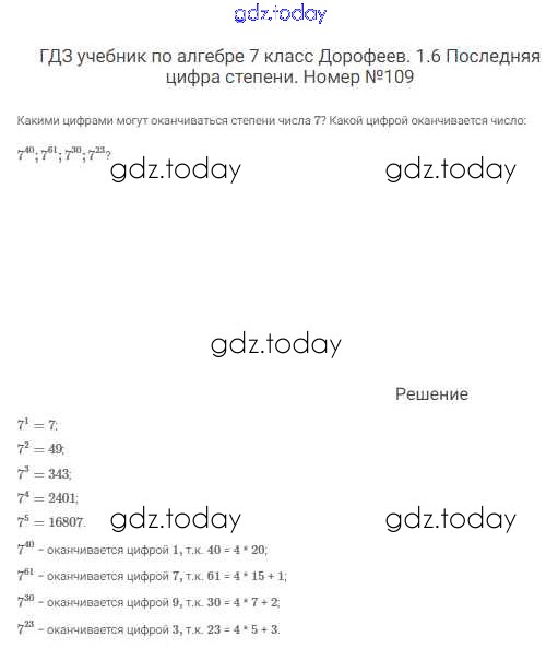 На страницах сайта gdz.today вы найдете учебный и вспомогательный материал, направленный на улучшения знаний школьной программы. ГДЗ - онлайн мир знаний Решение к упражнениям 109 Учебнику по Алгебре для 7 класса Дорофеев, Суворова Просвещение Академический школьный учебник 2020
