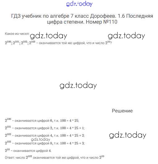 На страницах сайта gdz.today вы найдете учебный и вспомогательный материал, направленный на улучшения знаний школьной программы. ГДЗ - онлайн мир знаний Решение к упражнениям 110 Учебнику по Алгебре для 7 класса Дорофеев, Суворова Просвещение Академический школьный учебник 2020