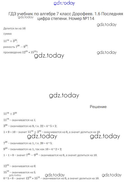 На страницах сайта gdz.today вы найдете учебный и вспомогательный материал, направленный на улучшения знаний школьной программы. ГДЗ - онлайн мир знаний Решение к упражнениям 114 Учебнику по Алгебре для 7 класса Дорофеев, Суворова Просвещение Академический школьный учебник 2020