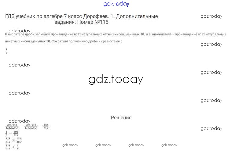 На страницах сайта gdz.today вы найдете учебный и вспомогательный материал, направленный на улучшения знаний школьной программы. ГДЗ - онлайн мир знаний Решение к упражнениям 116 Учебнику по Алгебре для 7 класса Дорофеев, Суворова Просвещение Академический школьный учебник 2020