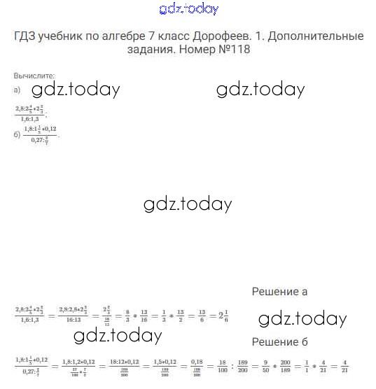 На страницах сайта gdz.today вы найдете учебный и вспомогательный материал, направленный на улучшения знаний школьной программы. ГДЗ - онлайн мир знаний Решение к упражнениям 118 Учебнику по Алгебре для 7 класса Дорофеев, Суворова Просвещение Академический школьный учебник 2020
